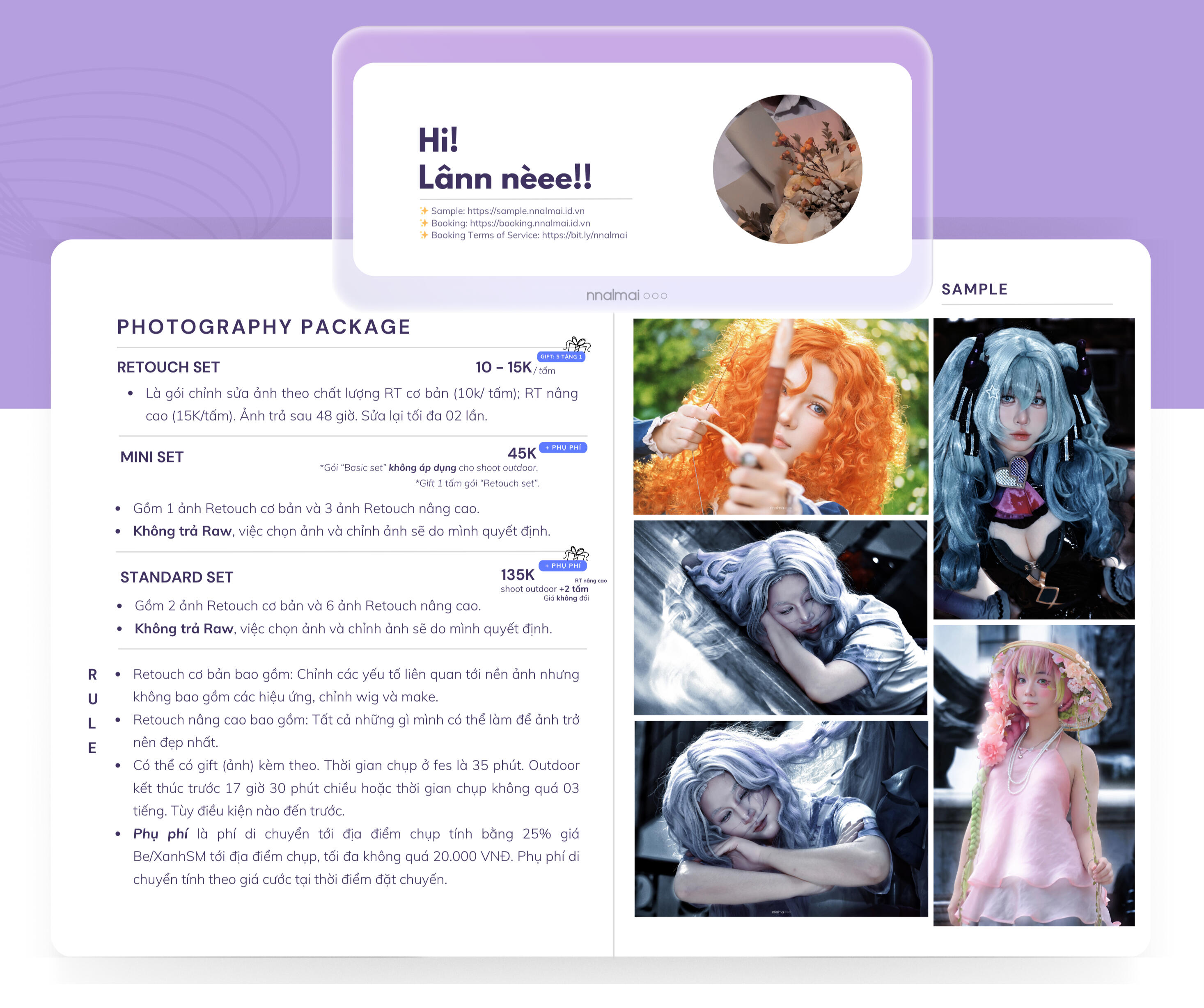 ** Bao gồm đồng ý việc đã được tư vấn, hướng dẫn đầy đủ về các vấn đề có liên quan tới gói chụp. Mình hiểu và đồng ý các hạn chế liên quan (nếu có).